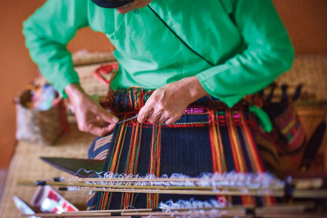槟榔谷的黎锦由最后一代绣面文身老人纯手工织绣,还原海南黎族古老部落的生活原貌,具有非常珍贵的收藏价值。